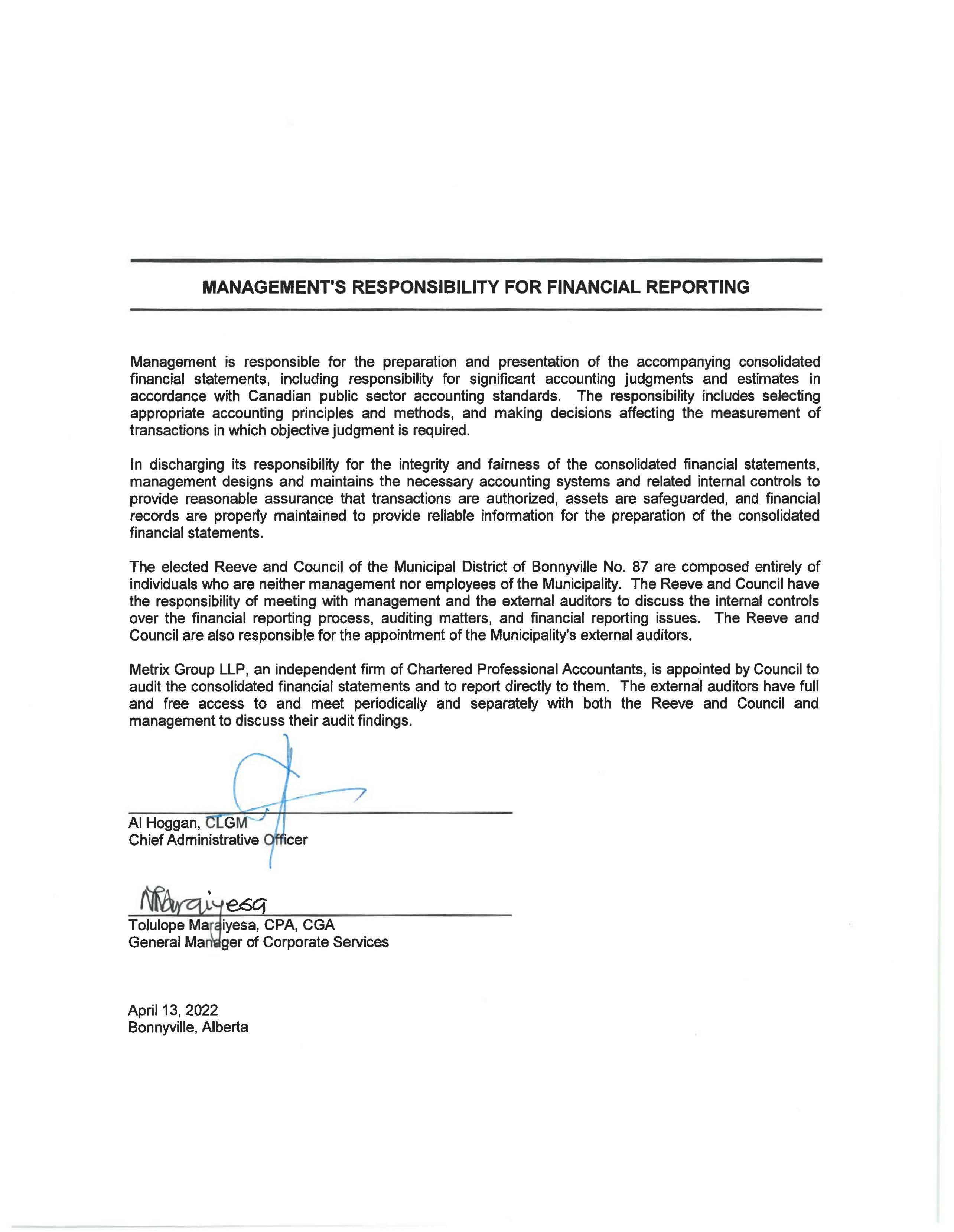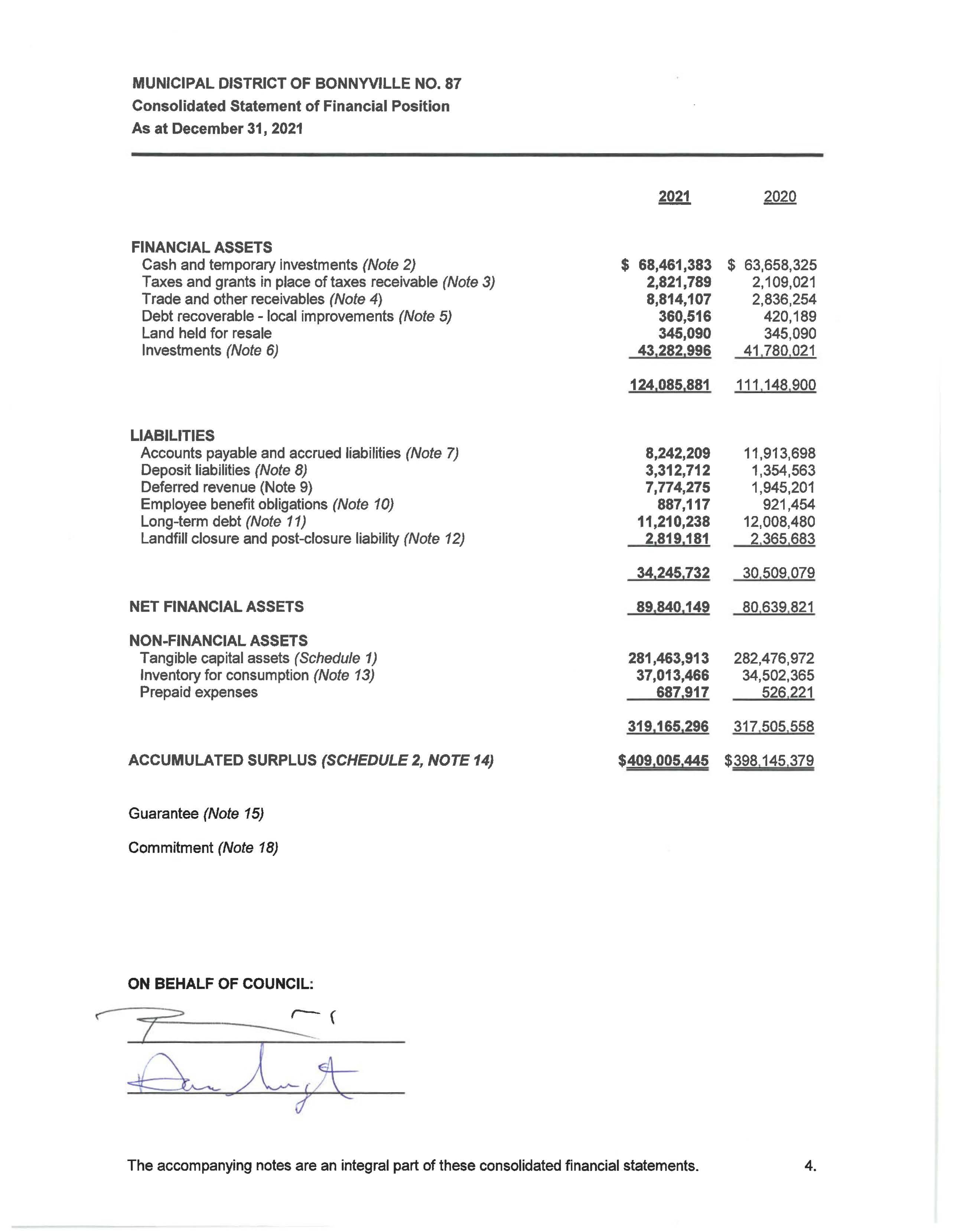 In accordance with the Canadian public sector accounting standards PS 3060 Government Partnerships, the financial position of the Municipality has been consolidated with the Municipality's proportionate 71% share of the Bonnyville Regional Fire Authority