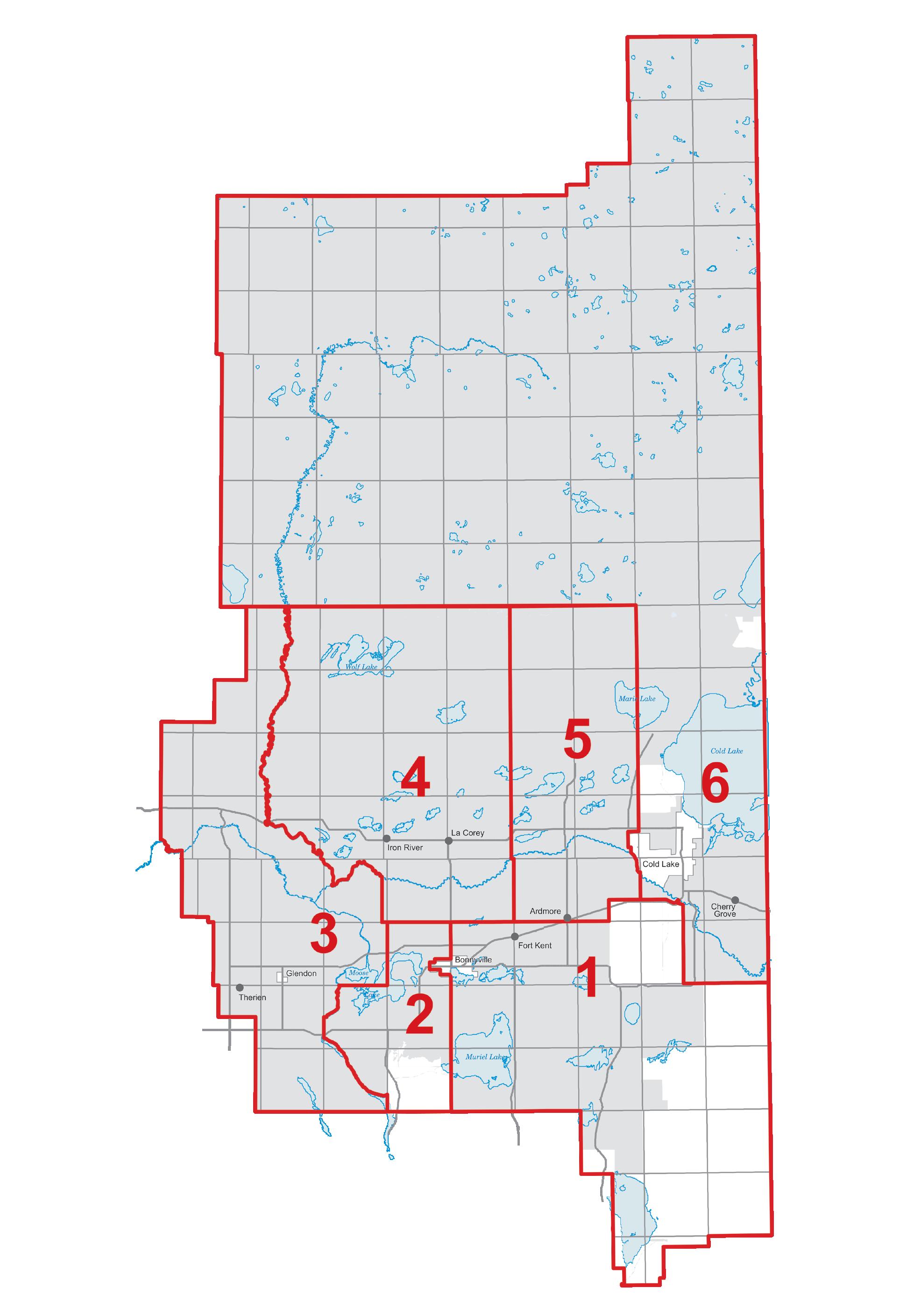 The Council of the Municipal District of Bonnyville No. 87 is comprised of a Reeve and six Councillors. Each Councillor represents one of the six (6) Wards with the M.D., as indicated on the map. Council members are elected within the ward where they live to act as representative of that specific area at Council.