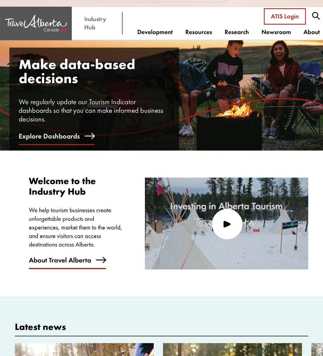 Travel Alberta supports the tourism sector via the Travel Alberta Industry Hub, providing operators with information regarding programs and tools, training and events, visitor and marketing insights, and news and media.