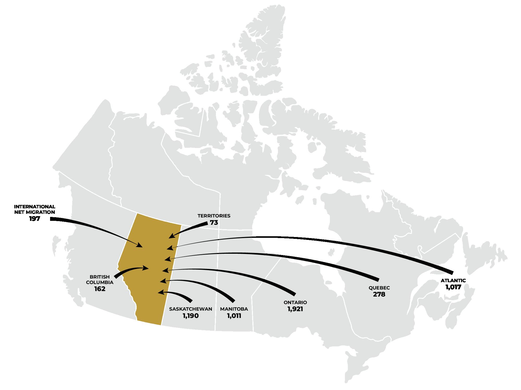 Between July and September, Alberta added 11,525 residents. Net international migration contributed to 0.01 per cent to growth within the province. Net interprovincial migration and natural increase each contributed 0.11 per cent. Over the previous 12 months, Alberta’s population increased by 83,796 people, representing 1.7 per cent year-over-year growth, 0.2 per cent above the national average. Alberta gained 5,849 new residents through migration. Net international migration added 197 new residents. Alberta welcomed 12,963 immigrants, representing 12.6 per cent of national arrivals.