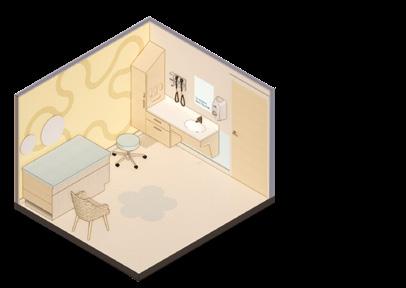 Description: Located in Topeka, Kansas, this pediatric clinic supports children with autism through a holistic design approach. Beyond medical care, the clinic fosters a safe, engaging environment where children feel comfortable and understood. Sensory-friendly strategies and thoughtful furniture layouts encourage exploration and ease. An on-stage/off-stage model separates staff and patient circulation to reduce stress, enhance privacy, and improve operational flow. This approach supports both patient comfort and staff well-being by providing dedicated spaces for focus, respite, and collaboration.