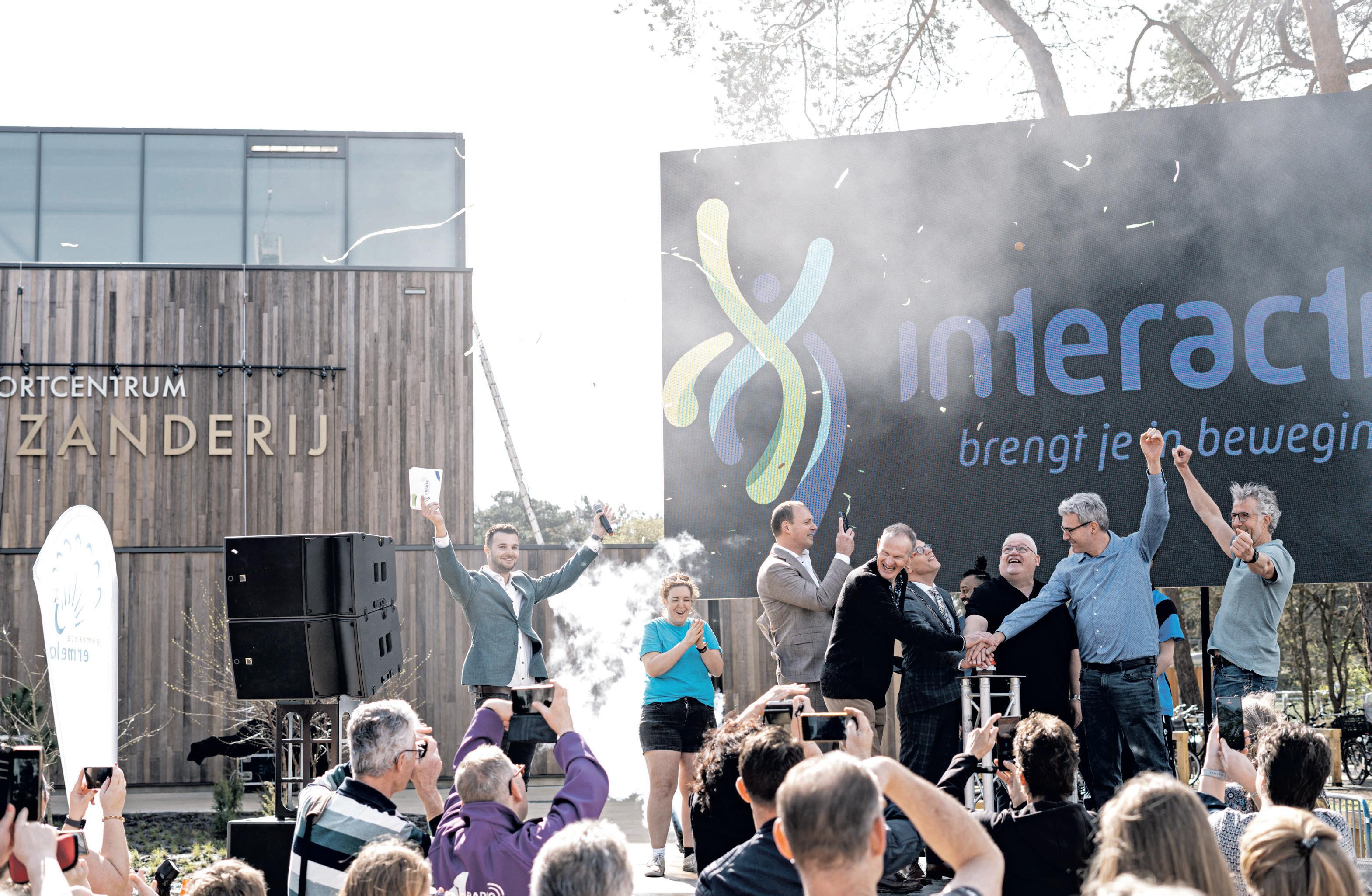 Vervolgens werden alle aanwezigen op het podium gevraagd om naar voren te komen en samen met het publiek af te tellen. Met confetti en CO₂-blazers werden de letters ‘Sportcentrum Zanderij’ op het gebouw symbolisch onthuld.