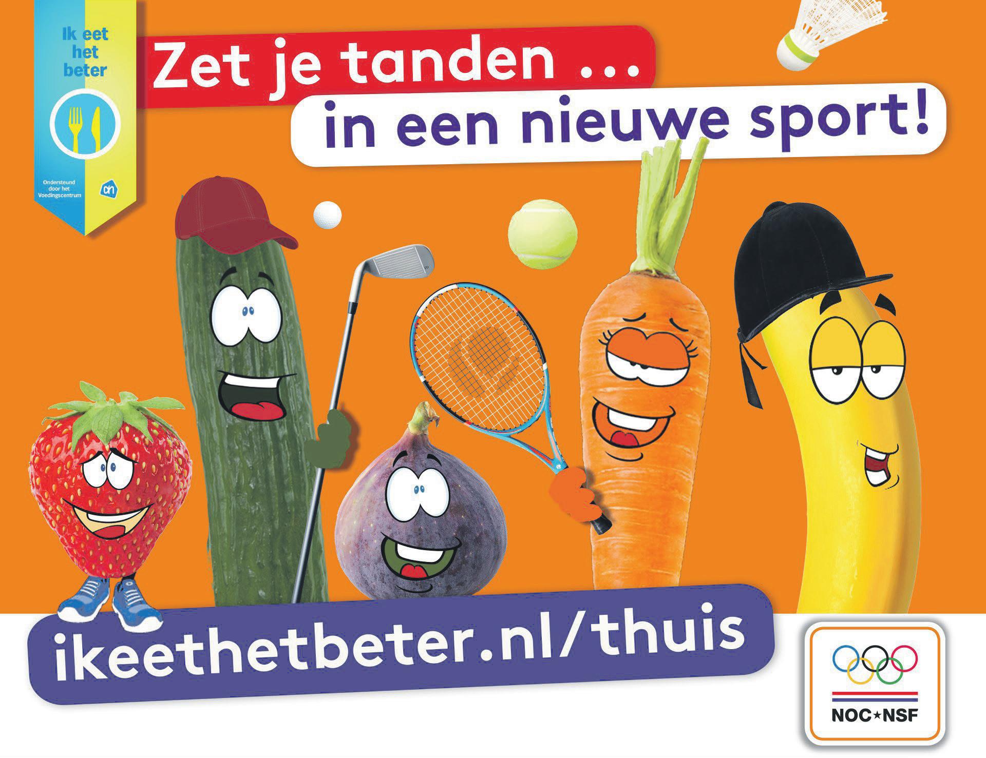 ï Denkbijsportenookaangezondevoeding.Eetmet elkaareenstukfruitendrinkvoldoendewater