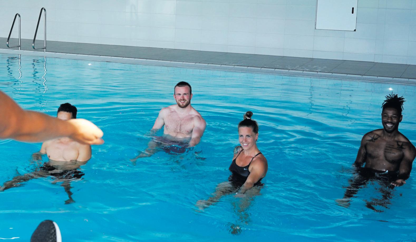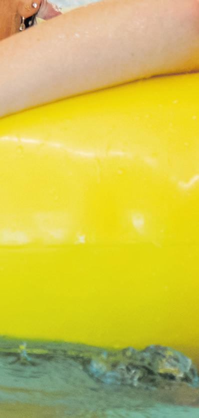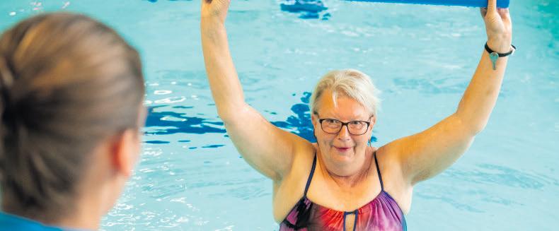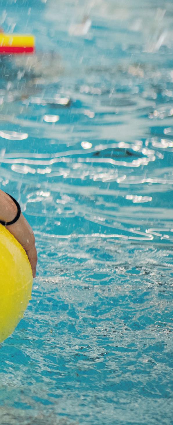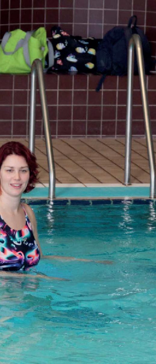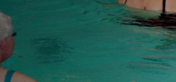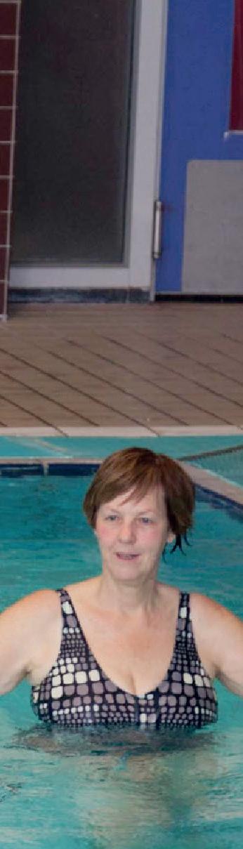 Meer zelfvertrouwen Hydrotherapie biedt onder meer uitkomst voor patiënten die revalideren of hun (spier)conditie willen verbeteren, legt sportfysiotherapeutMariëlleJanssenuit.‘Er zijnveelvoordelenaanoefeneninhetwater. Hetlichaamvoeltlichtaan,angstomtevallen verdwijnt en door de warmte van het water kan de patiënt zich beter ontspannen.’ Deze ervaringhelptpatiëntendielaagbelastbaar zijn ook meer zelfvertrouwen te krijgen.