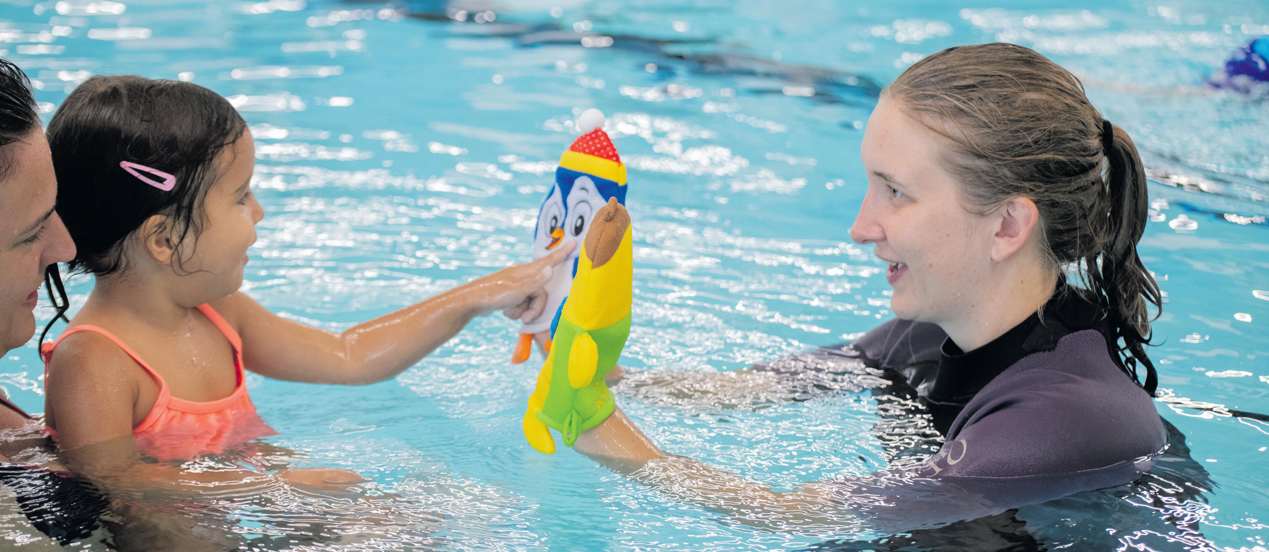 • Voor kinderen tussen de 3 en 4 jaar werken we spelenderwijs toe naar watergewenning om direct door te stromen naar de reguliere zwemles