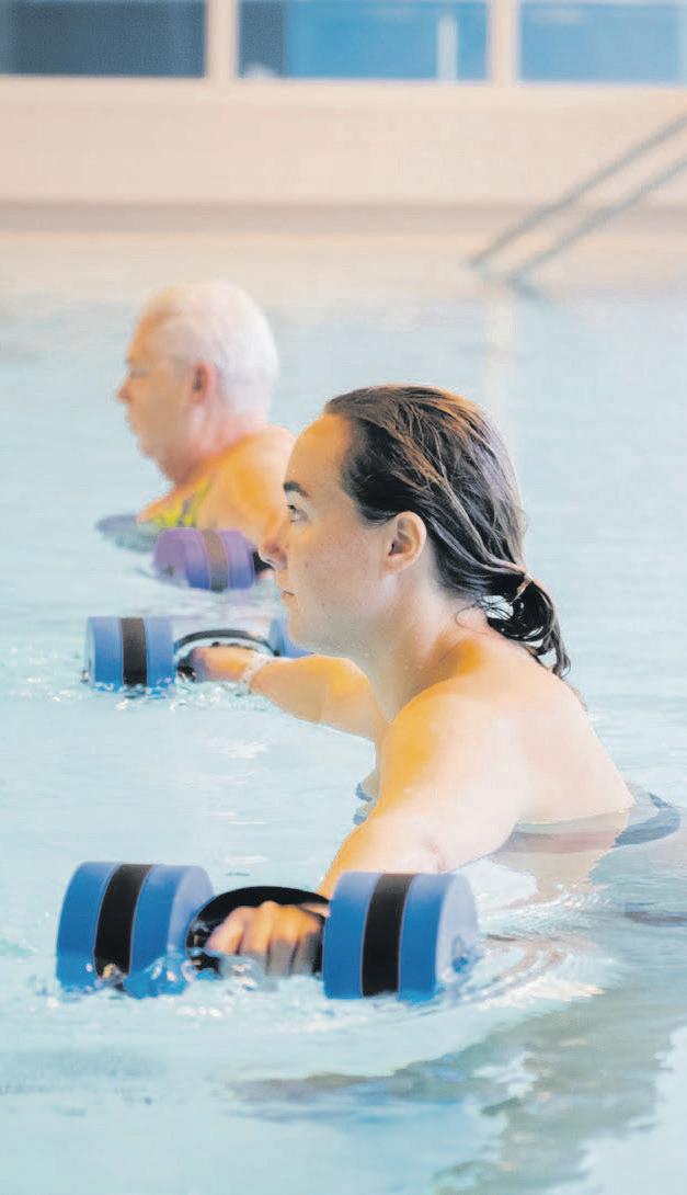 Deze groepsles is een workout in ondiep water waarbij je onder begeleiding van een gediplomeerd instructeur op je eigen niveau traint. Actief bewegen op muziek zorgt voor een extra energieboost! Tijdens de les gebruik je dumbells, flexibeams en beendrijvers en werk je aan je lenigheid, uithoudingsvermogen, spierkracht en coördinatie. Na het conditionele gedeelte met leuke oefeningen train je de afzonderlijke spiergroepen opnieuw. De training wordt afgesloten met een cooling-down’.