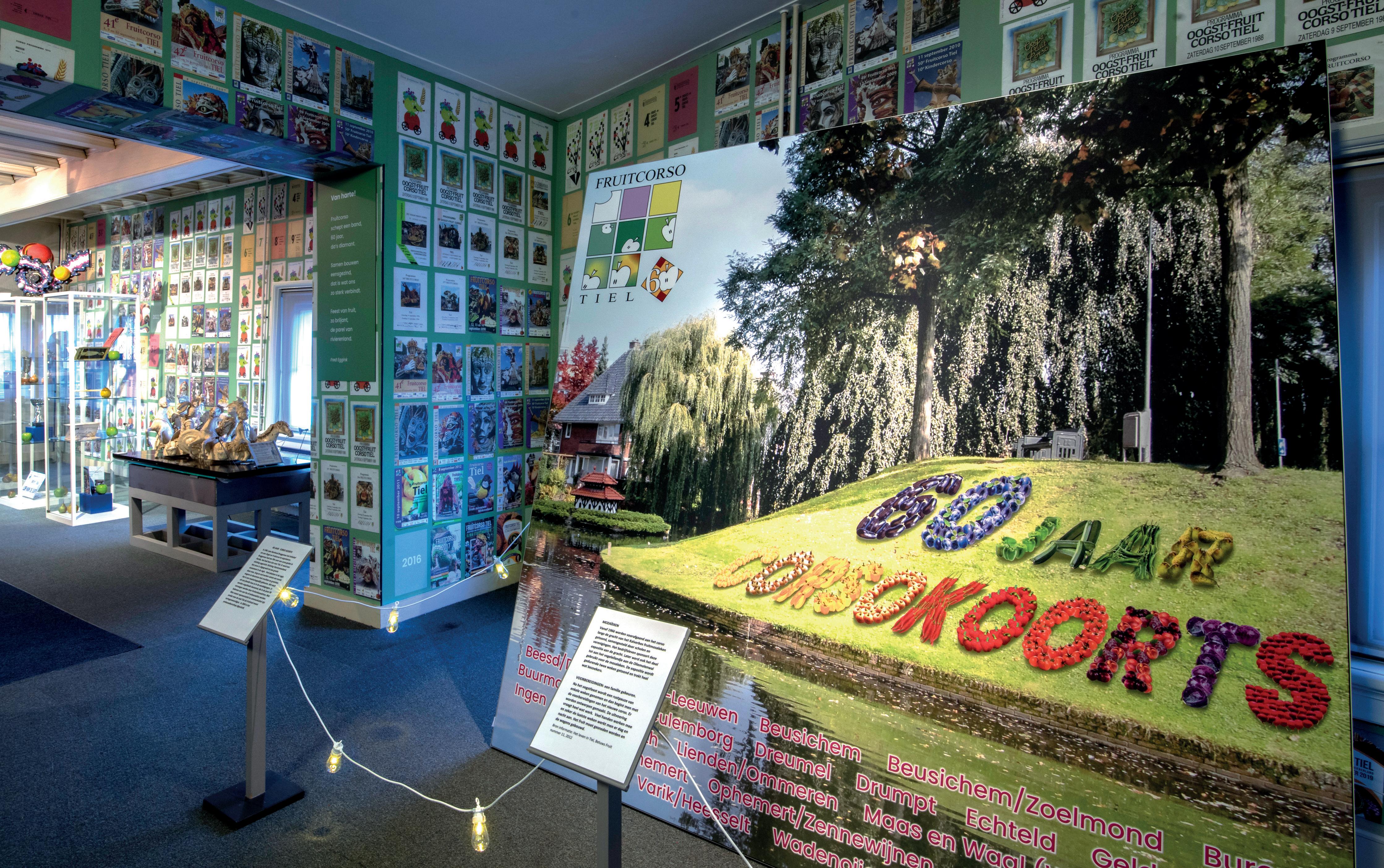 de maquettes en uiteindelijk aan het vastzetten van de vele groente- en fruitsoorten op de wagens. Met als hoogtepunt de parade van kleurrijke wagens door de straten van Tiel. De historie van het Fruitcorso is tot en met 31 december te zien bij de tentoonstelling 60 jaar Corso Koorts. .