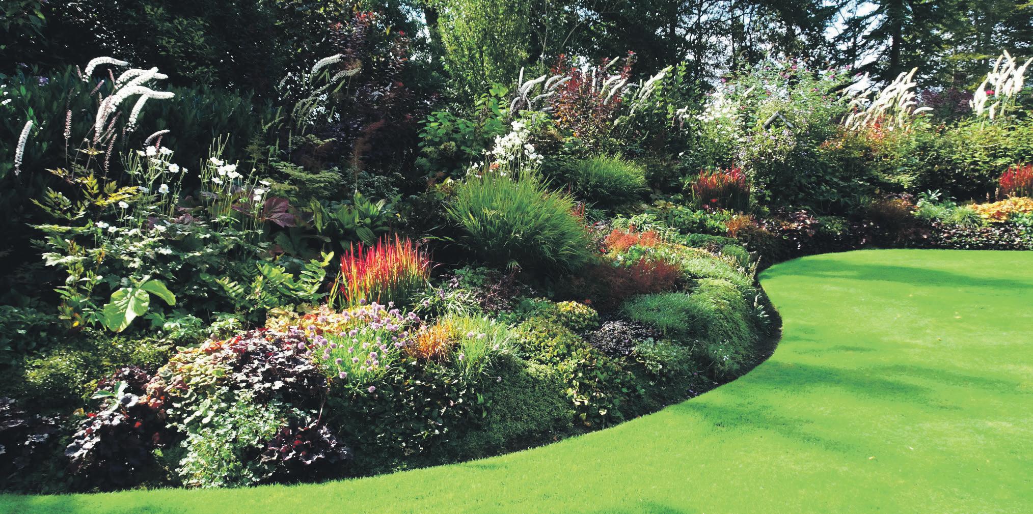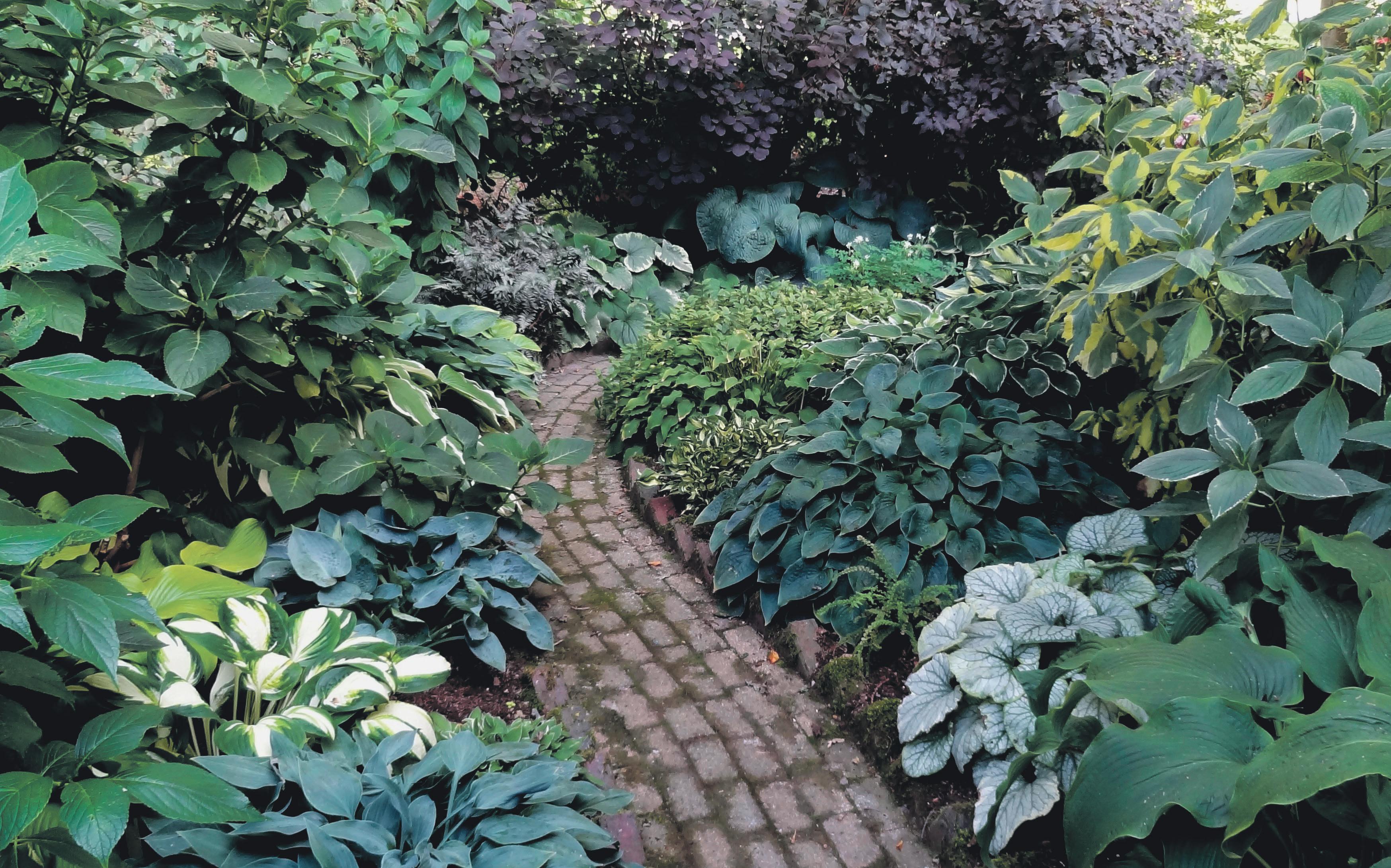 Vanwege de wind vindt men in alle borders naast stevige middelgrote en hoge bladplanten, een groot aantal bijzondere, bodembedekkers, waaronder een verzameling van 300 soorten hosta’s. In april komen ze in de Hosta-Walk langzaam ‘tot leven’. Het is schitterend om te zien, hoe de ‘neuzen’ in de loop van enkele weken uitlopen en veranderen in prachtige bodem bedekkende bladplanten. Deze border is aangevuld met andere schaduwplanten en hortensia’s.
