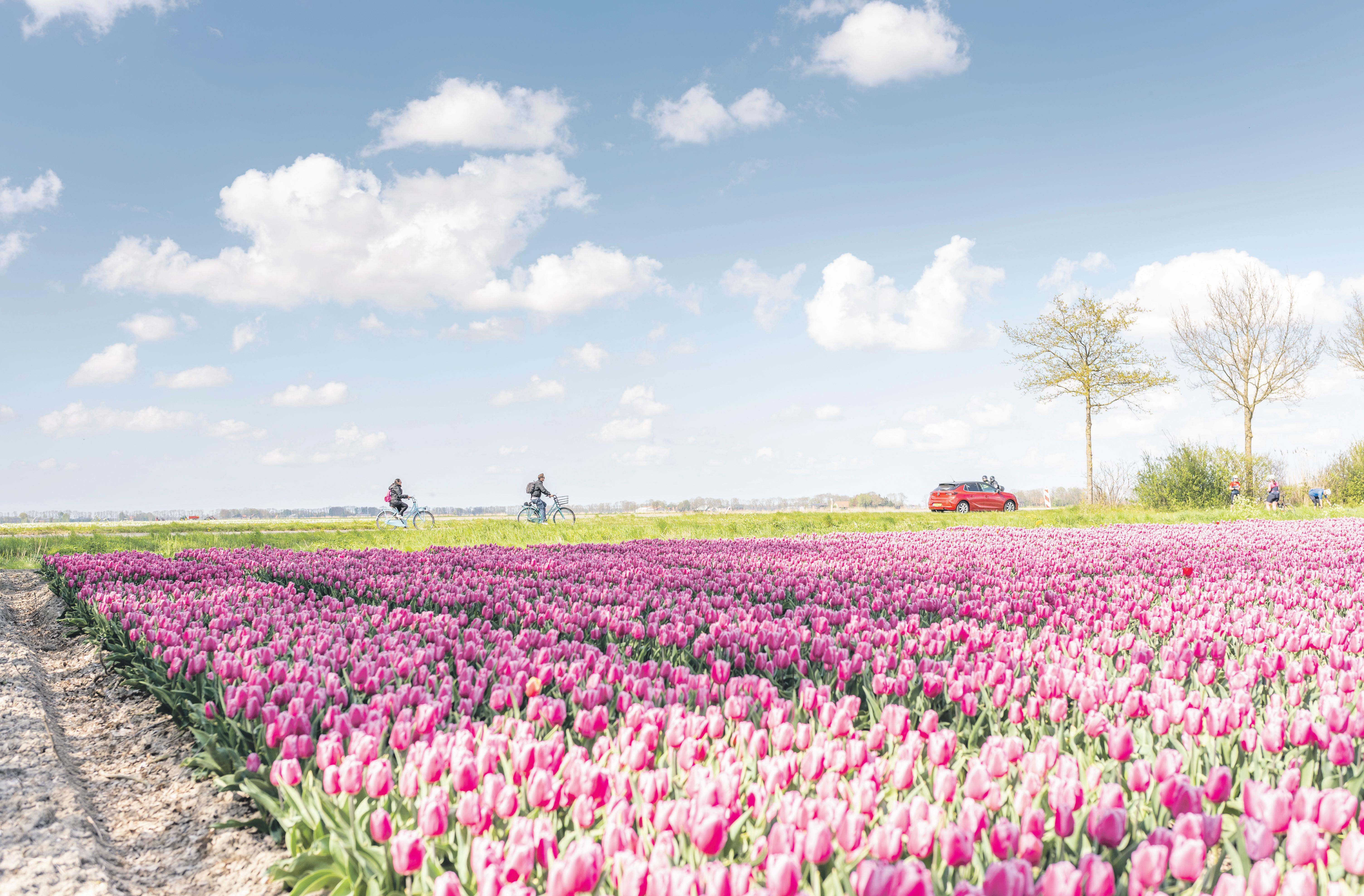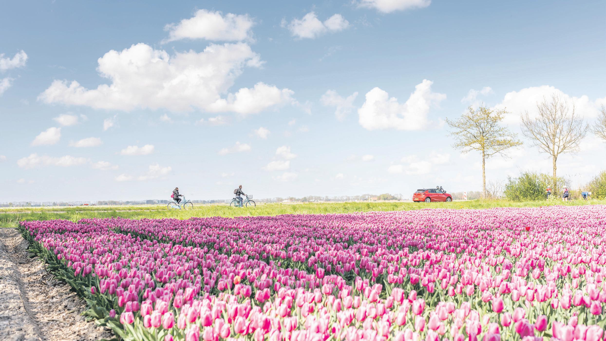 Naast een autoroute, is er ook een tulpenfietsroute te rijden.Defietsrouteisditjaar36kmlangenconcentreert zich tussen de dorpen Luttelgeest en Marknesse. Dit zijn tevens goede punten om op te stappen. De route leidtjelangsdiversekleurrijketulpenvelden,maarkomt ook langs de grootste plas van de Noordoostpolder, de Casteleynsplas, en recreatie- en natuurgebied de Wellerwaard.Tip:planeentussenstopinbeidedorpenen bewonderhettulpenmozaïekbijdeingangvanelkdorp.