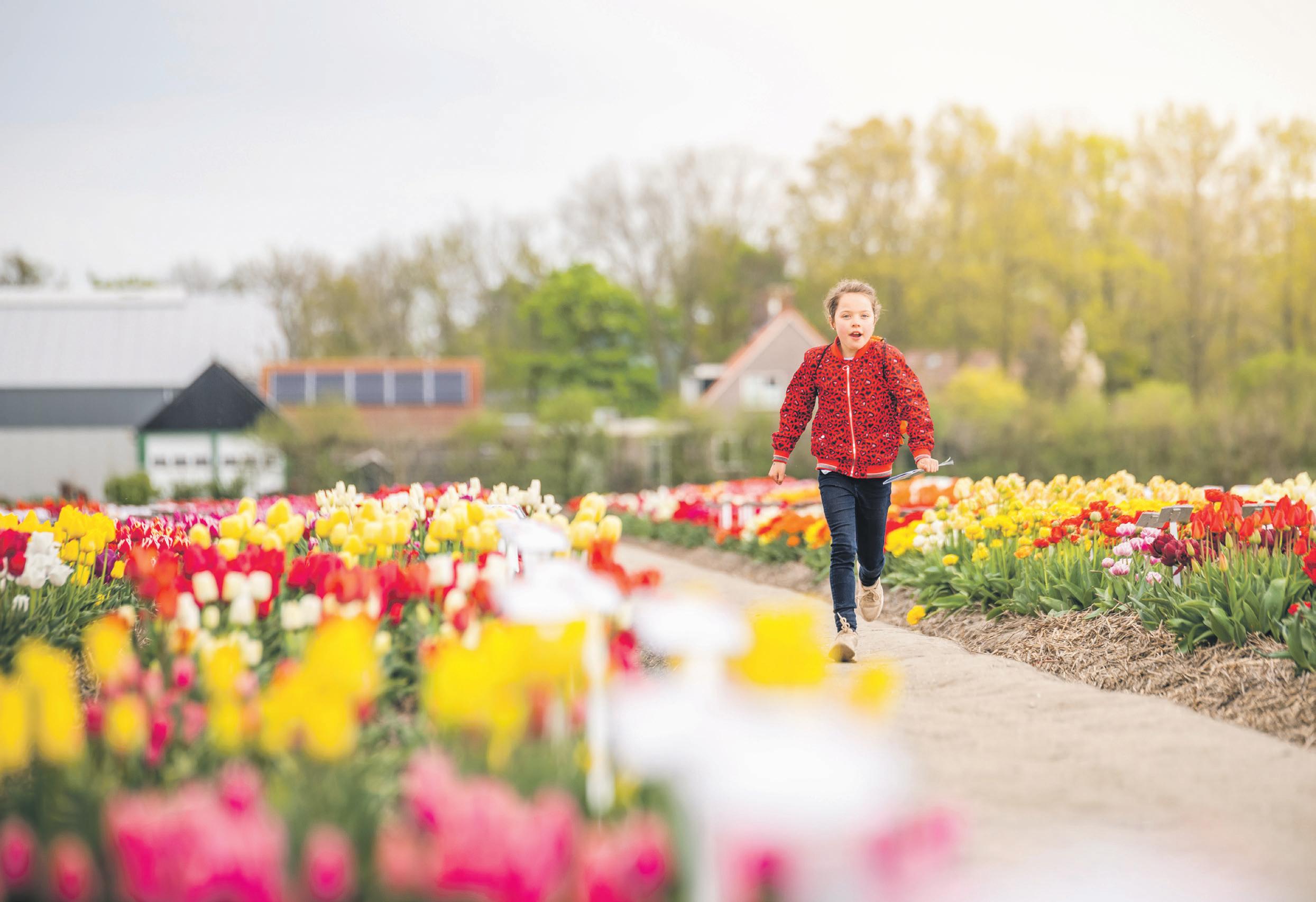 Uitgestrekte kleurrijke tulpenvelden, diverse routes, fotogeniek, tulpen showtuin, tulpen soortentuin, Bollie de Beer, Tulpenfestival app.