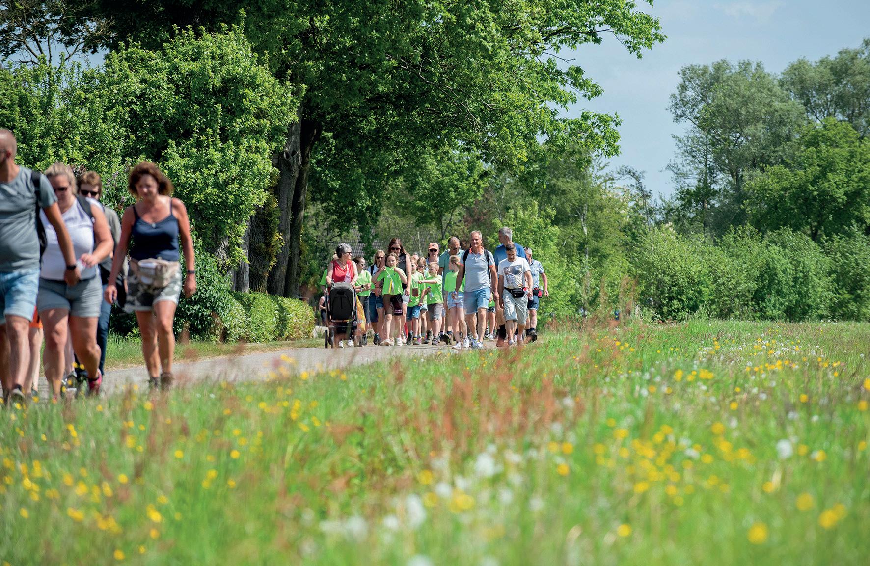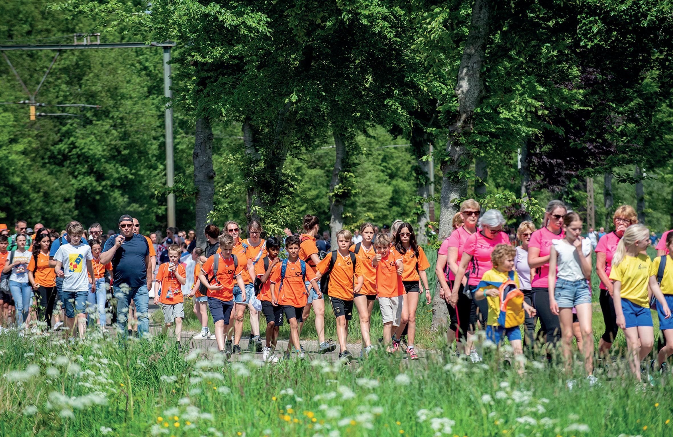 “Wandelen is voor jong en oud. Van oudsher doen veel scholen en vriendengroepen mee, om gezellig te kunnen bijkletsen terwijl ze sportief bezig zijn. Vooral die langere afstanden geven een beetje dat Vierdaagsegevoel.” Dat gevoel wordt versterkt door de muziekkorpsen die het laatste stuk van de route meelopen met de wandelaars. De organisatie verwacht rond de 3500 deelnemers, die allemaal samen met de muziek het laatste stuk naar het eindpunt afleggen. Mensen staan in de voortuinen of langs de route te kijken. Die maken er vaak iets moois van met versiering, muziek en als het warm is krijg je water of een nat pak.