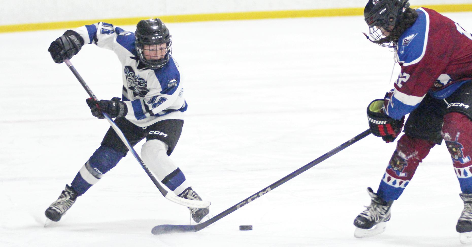 Kayne Graham and teammates with the 13 & Under Minnedosa Bombers hockey team played Pine Creek in their opening contest of tournament play in Shoal Lake on Saturday, Nov. 15. Winning their first game, the Bombers went on to defeat the host Hamiota Huskies to claim the championship title.
