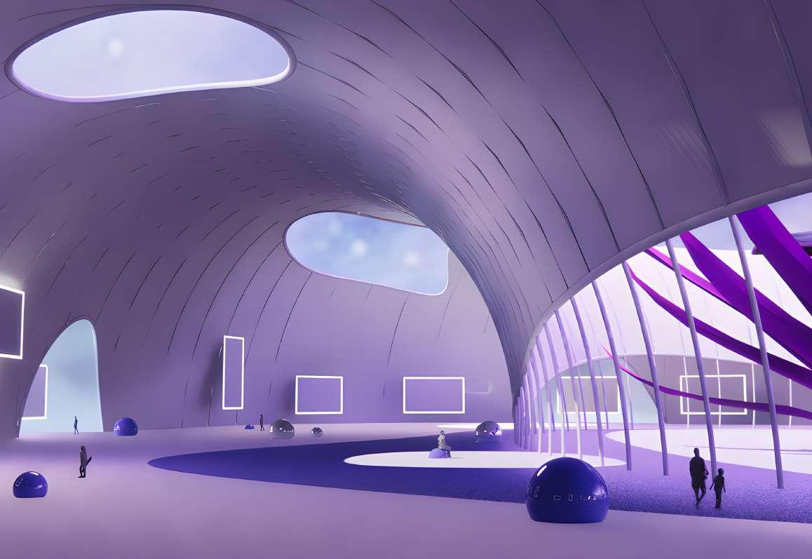 Prompt: massive museum in the style of Étienne-Louis Boullée with sweeping interiors, high ceilings, floating platforms with colourful, playful and futuristic installations. AI generated media, animated holograms, digital. There are augmented reality and holograms in the sky and the visitors are wearing VR headsets and interacting with the artwork. A lively atmosphere with a futuristic solarpunk vibe, drawing references from the game bioshock infinite.Aerial perspective. High detail, sharp focus, high definition, --ar 16:9 --v