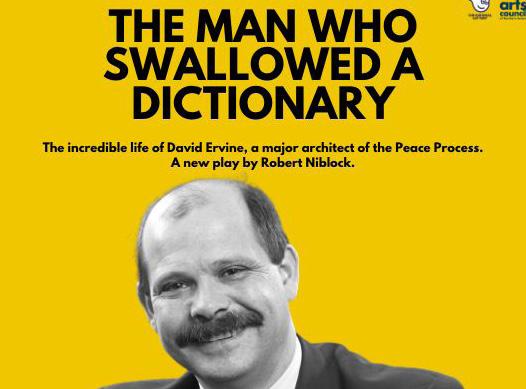 WHO SWALLOWED A DICTIONARY, a new play by Bobby Niblock, about the life of ex UVF and PUP politician, David Ervine. This oneman show chronicles the remarkable life of Ervine, from the backstreets of East Belfast to Long Kesh prisoner to political negotiations at the White House and Downing Street.