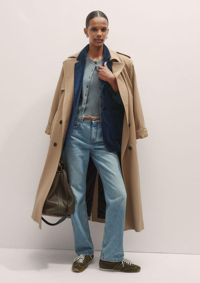 The Zip Front Contoured Layering Jacket, $595, Textured High Waist Wide-Leg Pant, $425, Relaxed Shoulder Trench Coat, $995, Asymmetric Slipper, $425