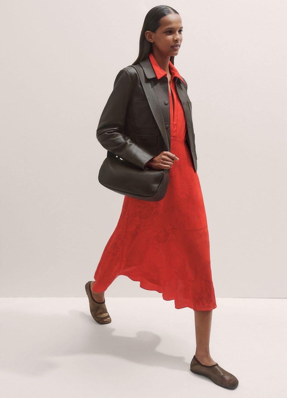 Front Mini Dress, $345, The Heritage Fitted Military Jacket, $645, Soft Constructed Day Bag, coming soon, $850, Retro Runner Sneaker, $325, Reversible Belt, $145
