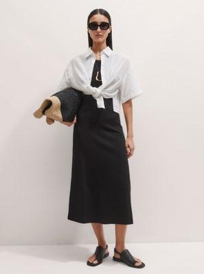 Relaxed Button-Front Vest, £225, Rip + Repair Denim Short, £150, Collared Button-Front Jumper, £175, Multi Stripe Short, £165, Reversible Tote, coming soon, £250, Ultimate Vest Midi Dress in Black, other colours available, £95, Tie Front Beach Shirt, £65