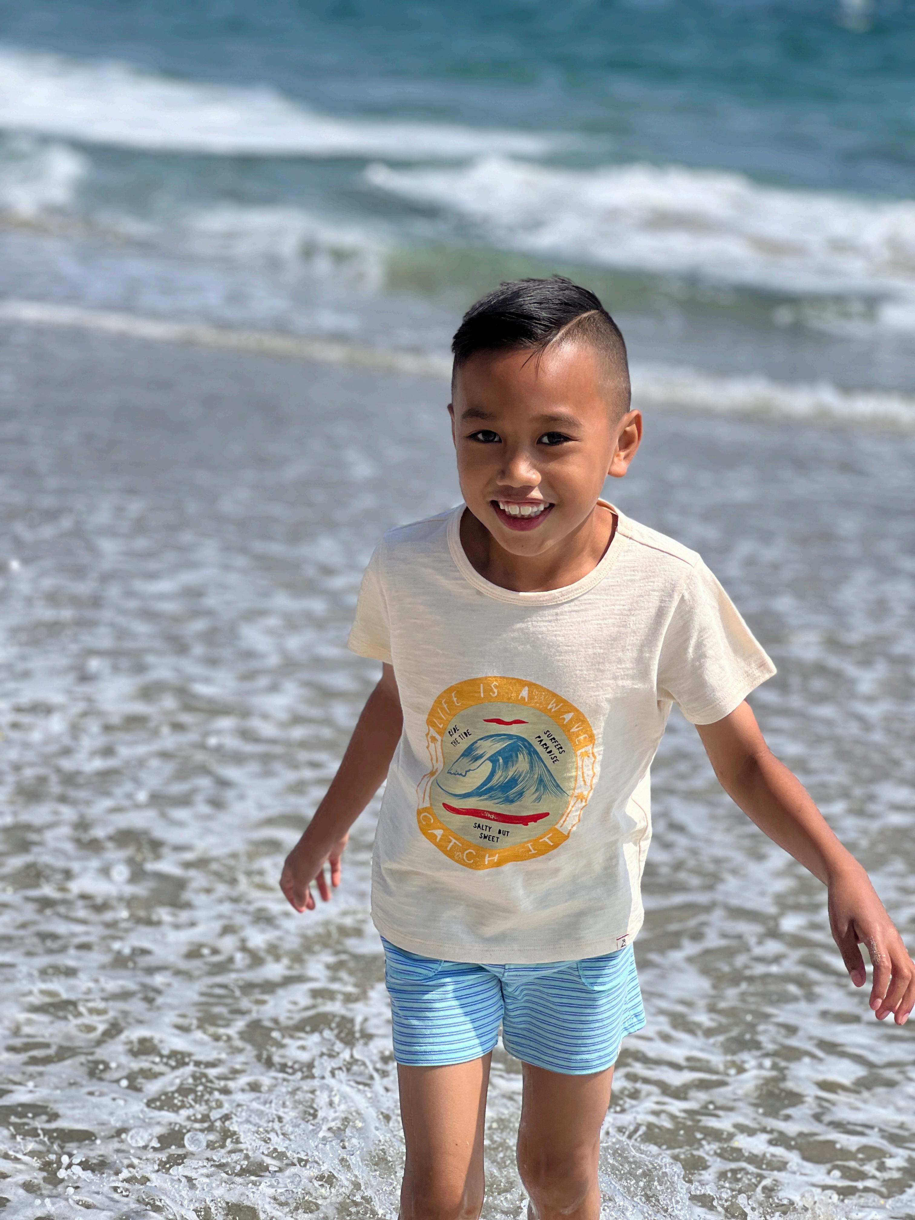 unlike some lines that print their name all over their tops, other than a few printed collections, ours are clean and classic with quite a few stripes thrown in for fun!