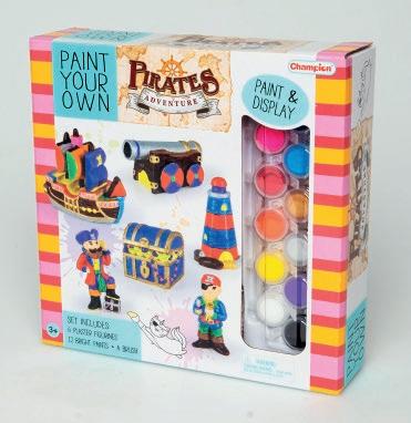 Champion. Måla katter, Pirater eller Dinosaurie. Med gipsfigur/-figurer, 6 färger och pensel. Från 3 år.