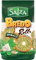 Bredo to chrupiąca nowość w ofercie SOFIO, marki Salza. Są to pieczone krążki chlebowe w czterech pysznych smakach: z solą, o smaku serowo-szpinakowym z dodatkiem czosnku, o smaku pizzy, z dodatkiem grzybów, śmietany i koperku. Krążki Bredo nie są za twarde, lecz odwrotnie. Bredo to znakomite połączenie smaku z delikatną kruchością. Jest to świetna przekąska na każdą okazję. Gramatura produktu 70 g. BREDO pakowane są w kolorowy karton zbiorczy, który służy jako ekspozytor. www.SOFIO.pl
