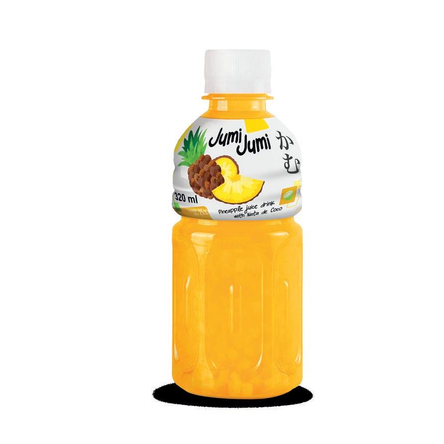 Jumi Jumi to połączenie soku owocowego i delikatnych kawałków galaretki kokosowej w idealnie zbalansowanych proporcjach. 25% naturalnego soku prosto z owoców (nie z koncentratu!) + 25% Nata de Coco – czyli filipińskiego przysmaku w formie sprężystych kostek wytwarzanych z wody kokosowej. Czujesz, że żujesz! Cztery premierowe smaki to: liczi, mango, truskawka i ananas.