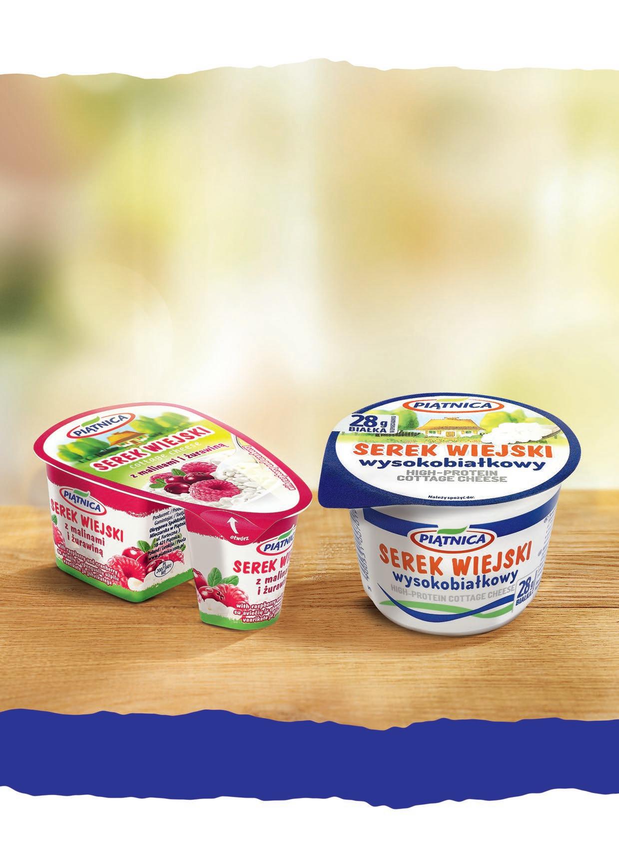 Wśród dominujących trendów widzimy zainteresowanie konsumentów tzw. produktami funkcjonalnymi, które obok prostego składu wyróżniają się dodatkowymi właściwościami prozdrowotnymi. W Piątnicy odpowiadamy na ten trend, oferując produkty takie jak Serek Wiejski wysokobiałkowy czy Skyry. Cechują się one dużą zawartością białka i są chętnie wybierane przez osoby uprawiające sport lub będące na wysokobiałkowej diecie. W ten trend wpisują się także Koktajle Odżywcze z Piątnicy zawierające pełnowartościowe i dobrze przyswajalne białko serwatkowe. Jest ono źródłem cennych aminokwasów, których nasz organizm potrzebuje do prawidłowego funkcjonowania.