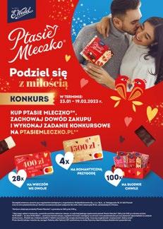 Z okazji walentynek marka E.Wedel przygotowała wyjątkową aktywację, w ramach której realizowany będzie m.in.: konkurs konsumencki „Podziel się miłością”. Zasady są niezwykle proste. Uczestnicy zobowiązani są do zakupu minimum jednego opakowania pianek Ptasie Mleczko® o dowolnym smaku, zarejestrowania paragonu na dedykowanej stronie oraz napisania życzeń dla swojej drugiej połówki. Na autorów najlepszych tekstów czekają słodkie nagrody, a wśród nich m.in.: 28 kart przedpłaconych Sodexo o wartości 400 zł na wieczór we dwoje, 4 przedpłacone karty Sodexo o wartości 1 500 zł na romantyczną przygodę oraz 100 walentynkowych boxów z piankami Ptasie Mleczko®. Akcja trwa od 23 stycznia do 19 lutego.