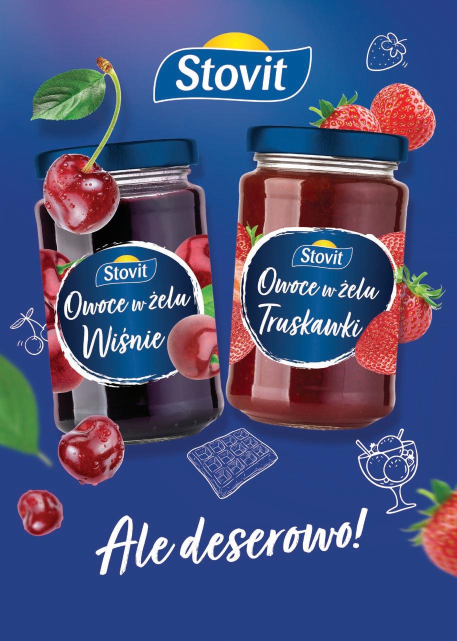 Ale nowość! Stovit wprowadza na rynek Owoce w żelu – kolejny po dżemach przysmak o obniżonej zawartości cukru. Nowy produkt zawiera aż 50% owoców i to w dużych kawałkach, co wpływa na intensywność smaku, wyjątkową soczystość i bardziej naturalną konsystencję. Owoce w żelu można ze smakiem dodawać do wielu potraw i deserów – lodów, ciast, naleśników czy owsianki. Na dobry początek miłośnicy zdrowszych wariantów produktów owocowych mogą spróbować dwóch najpopularniejszych, klasycznych smaków: truskawkowego i wiśniowego. Wkrótce w sklepach pojawi się też egzotyczny wariant mango-marakuja. www.STOVIT.com.pl