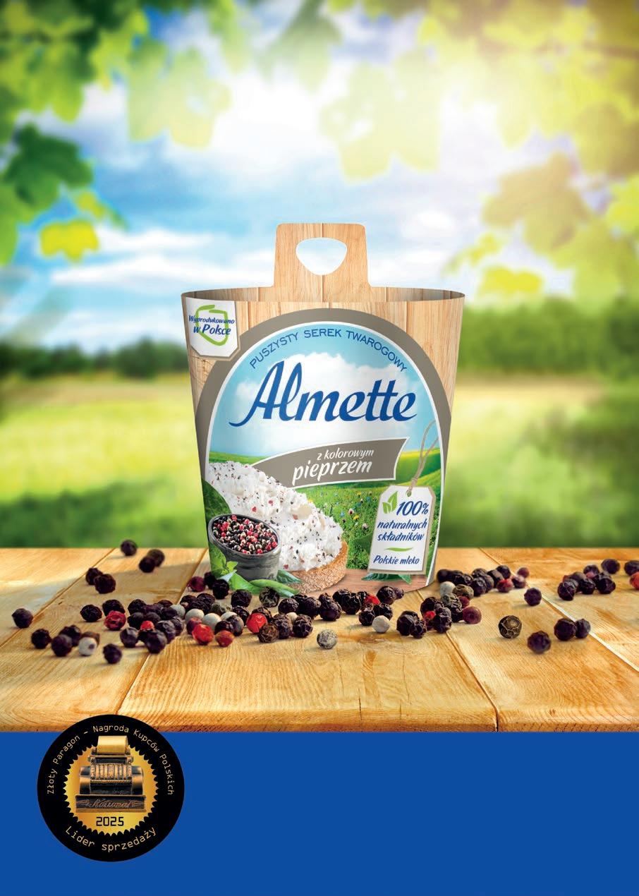 W linii Almette pojawiły się dwie unikalne nowości – Almette lekki naturalny i Almette lekki z ziołami. To pierwsze na polskim rynku produkty typu „light” w kategorii puszystych serów twarogowych. 100% naturalnych składników, obniżona zawartość tłuszczu oraz większa ilość białka to benefity idealnie wpisujące się w bieżące trendy konsumenckie. www.ALMETTE.pl