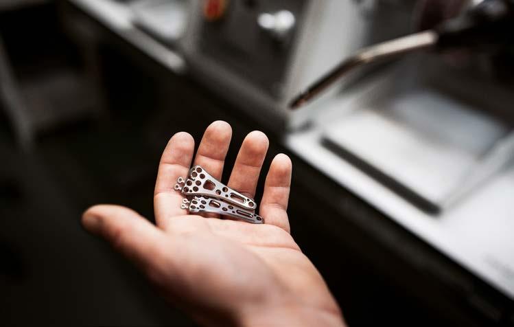 leading physicians and operating theatre staff around the world to watch them do their work. What medical problems are unsolved? How do we come up with new solutions? Sometimes it helps to think outside the box, to leave the op erating theatre and the prototype workshop and to visit a construction fair, for example. There, our engineers explore the latest trends on topics such as fixation or drilling. Then we perfect the ideas and adapt them to create medical tech nology.