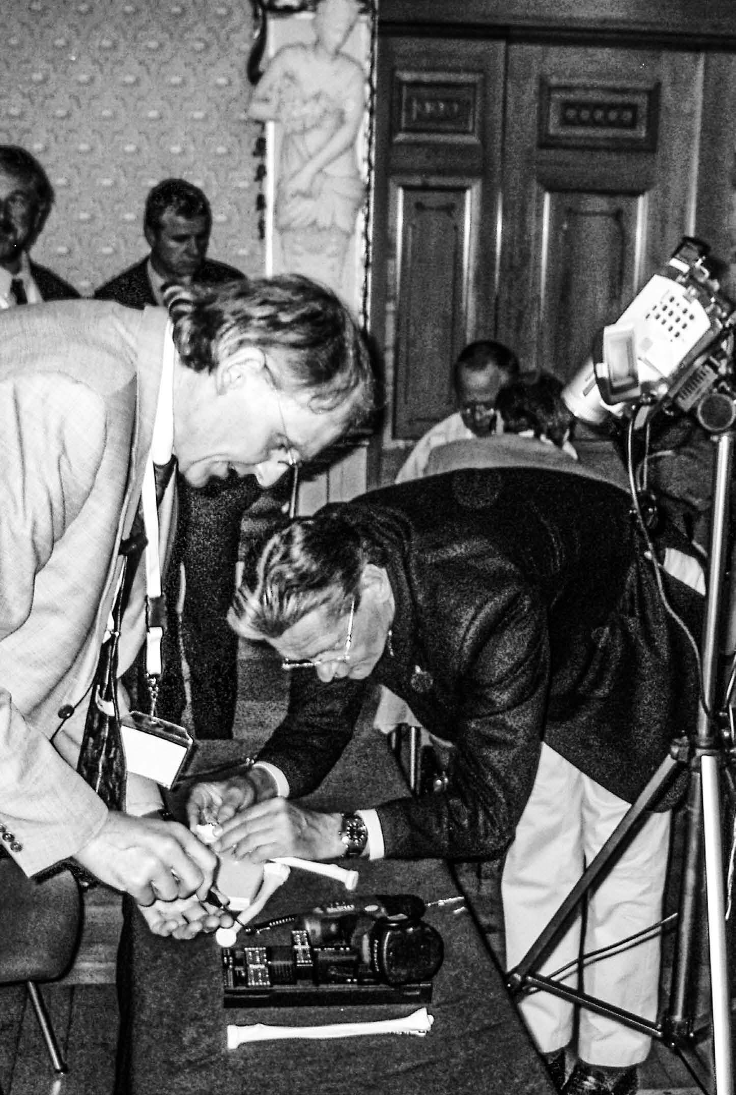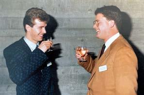 Willi Miesch and Thomas Straumann in 1985 at a training course of the Association for Osteosynthesis, followed by an aperitif.