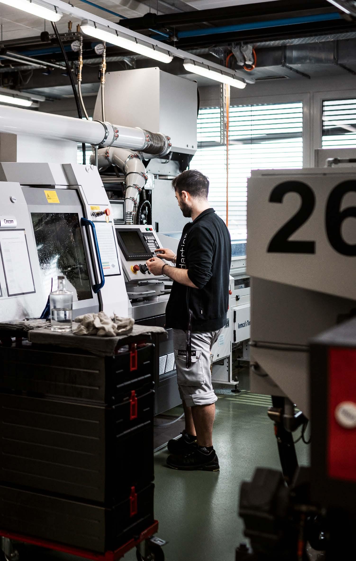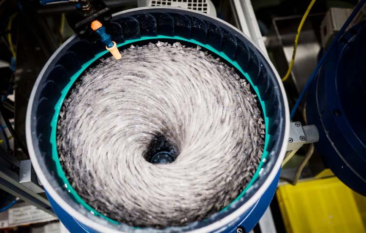 B Yes, of course. In product development, there has to be the freedom to tread completely new paths, and to take the risk of failure. This is done according to the principle of trial and error. Sometimes you go one step forward and two steps back. Production, on the other hand, is completely different. There you have to focus everything on profitability at the Swiss location and that means high capacity utilisation, auto mation and high quality output with low wast age. To achieve this, innovations are constantly needed: for example, we have developed an au tomated measuring cell that uses robotic tech nology to check the proportions of our screws across all dimensions and this allows us to carry out quality control 24/7.