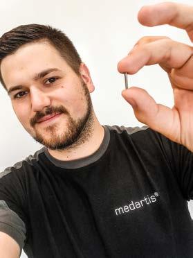 B This is an interesting parallel to Medartis’s development. Thomas Straumann, the founder of Medartis, also needed a lot of staying pow er and perseverance to see his vision through. Nobody wanted to give him credit at the begin ning, and the competition seemed overwhelm ing. For 15 years, Medartis invested heavily in its growth and made losses. Nevertheless, Thomas Straumann fully trusted his friend and CEO Willi Miesch and the Medartis team, until the prod ucts became established thanks to their inno vative technologies, precision and new fields of application.