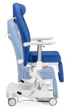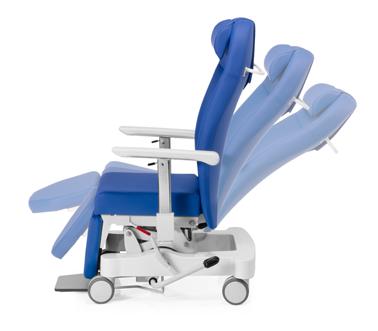 Backrest tilting system and ergonomic design combined with seat movement keeps the patient suspended in “zero gravity” avoiding pressures in the lower back, pelvis and legs.