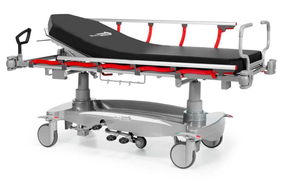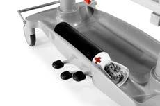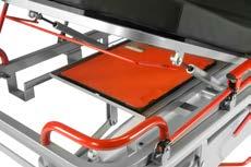 Foot pedals at either side of the stretcher control height, Trendelenburg and reverse Trendelenburg adjustment.
