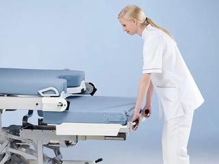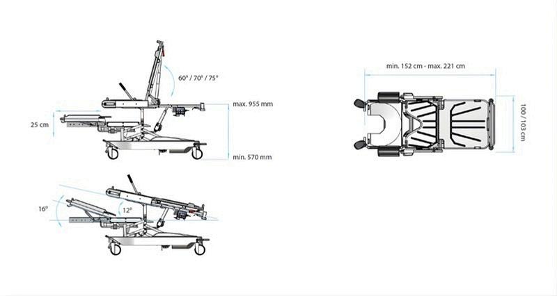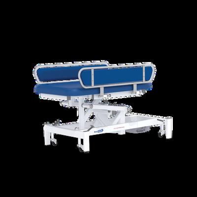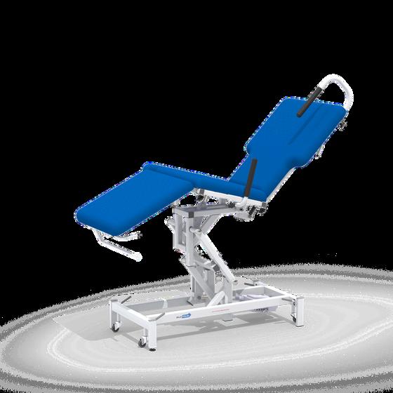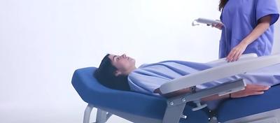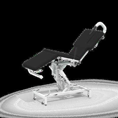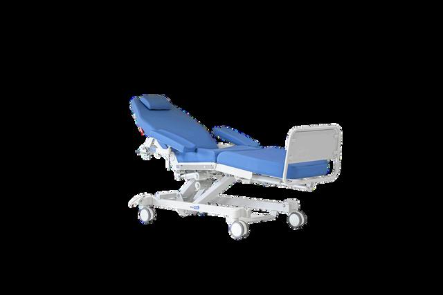 A gas-assisted backrest and foot section come as standard, along with an adjustable padded headrest. Its extra-low entry height facilitates safe wheelchair transfers and helps reduce patient handling risks