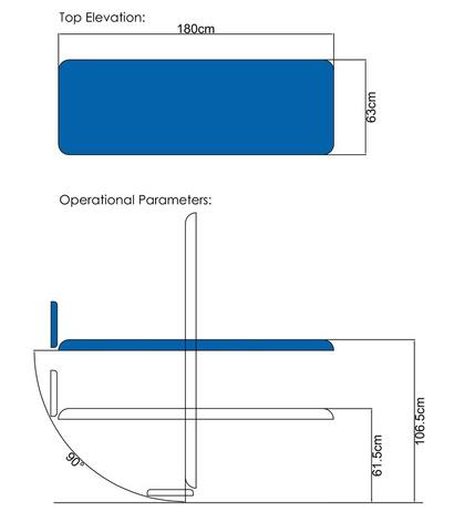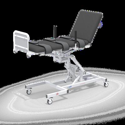 2-Section Tilt Table- Building on the standard model, the table includes an adjustable backrest, allowing the unit to function both as a tilt table and a general examination couch Additional features include a fixed footboard, Velcro harnesses and patient handles