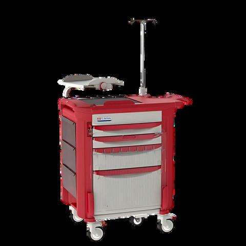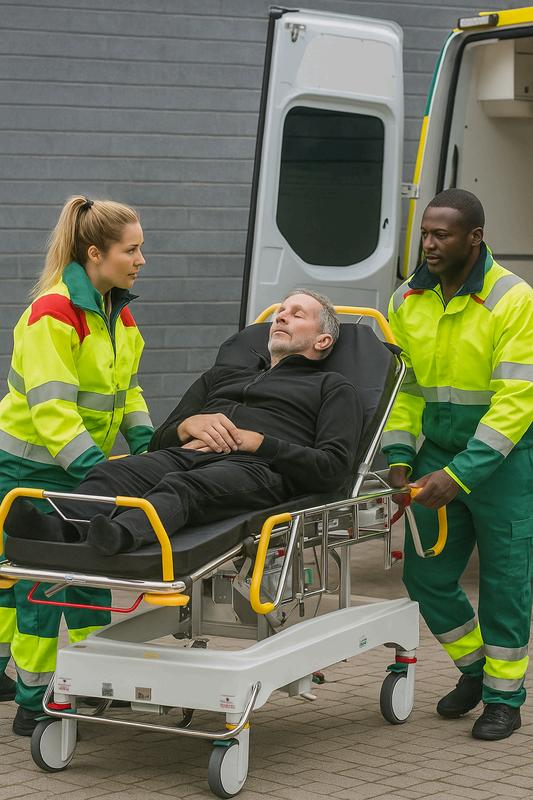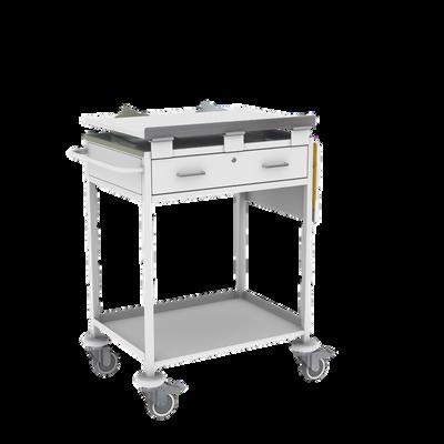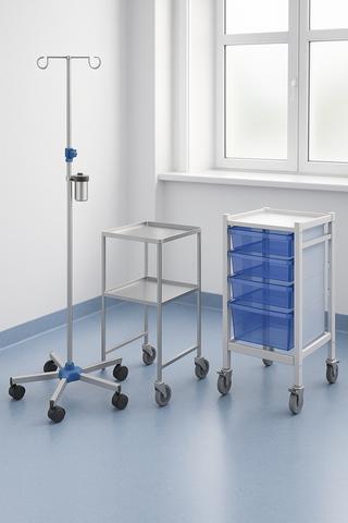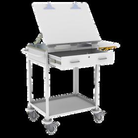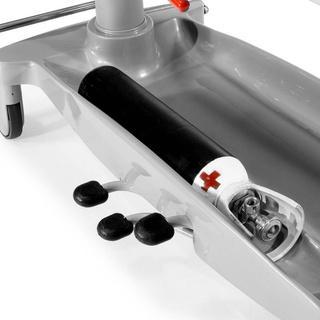 Constructed on an epoxy-coated steel frame that meets MDR and CE medical device certification standards Manoeuvrability is ensured by Ø125 mm locking castors, with the option to upgrade to larger Ø300 mm front castors for challenging surfaces
