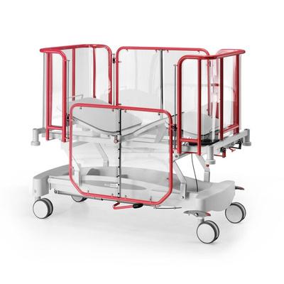 The Optima Birthing Beds, available in hydraulic, 2-motor, or 4-motor versions, each delivering precise ergonomic adjustments, low-profile access, and unmatched clinical flexibility to support mother, midwife, and obstetrician throughout labour and delivery. Complementing the bed, the Baby Crib provides a secure, mobile neonatal cot with adjustable Trendelenburg positions and antimicrobial bedding for safe and convenient mother–baby proximity. Completing the suite, the ergonomic Neonatal Chair delivers comfortable seating for caregivers and parents during extended stays in neonatal units.