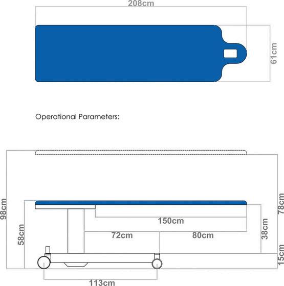 With a low entry height of 58 cm rising to 98 cm at maximum e evation, the table supports a safe working load of 200 kg.