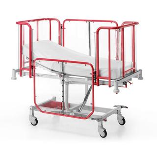Ease of handling is ensured by 100 mm castors, two of which are lockable and each cot offers hydraulic Trendelenburg and reverse Trendelenburg tilting of ±12°, controlled via a manual ever