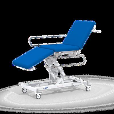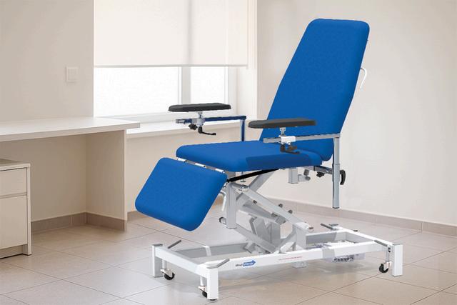 Crafted for medical examination, sampling, and safe patient transfers the Hydraulic Medical Recliner Chair incorporates a stepless hydraulic height adjustment from 51 cm to 83 cm operated via a convenient foot pump