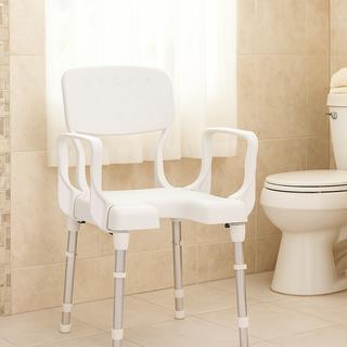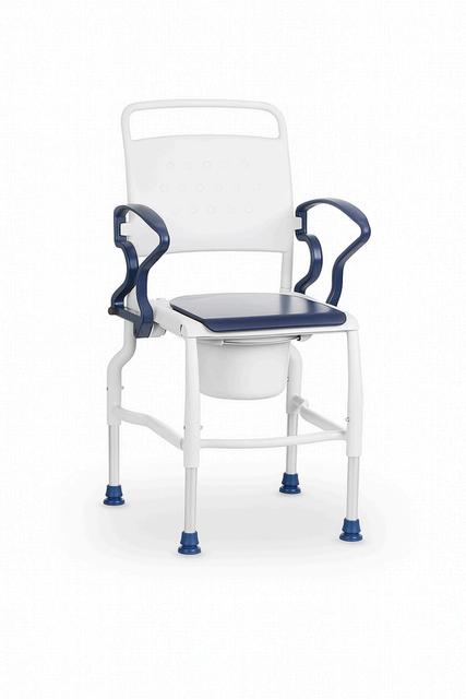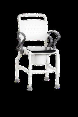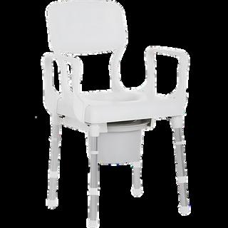 Designed for mu tifunctional use at bedside over toilets or in showers, the chair includes fold-away armrests a padded removable seat cushion, and an integrated pail with rail for discreet waste handling. Bui t for ease of cleaning and patient safety