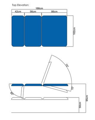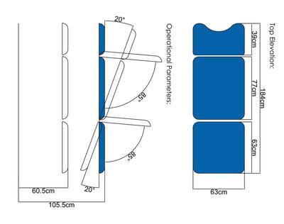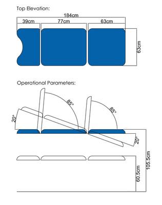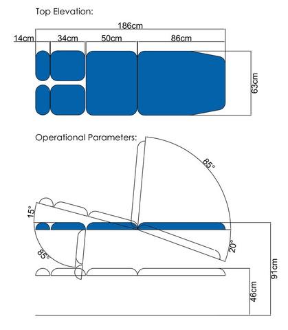 Each version ranging from the 2-section to the 5-section models offers identical performance credentials. All feature gas-strut assisted backrests retractable easy-clean castors for seamless mobility and secure positioning for mobile hoist access. Every unit includes a stitched ergonomic breathing hole a paper roll holder, adjustable eveling foot for uneven surfaces, and an extra-low entry height for whee chair accessibility.