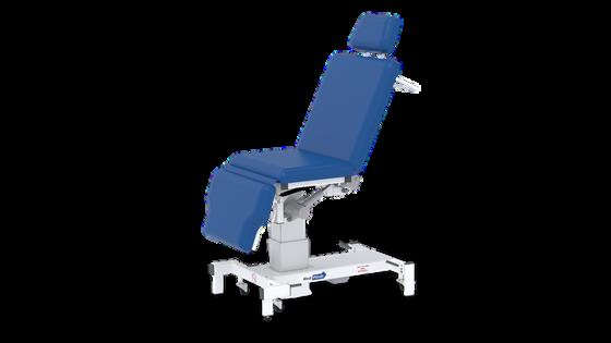 The chair includes pre-programmed positions plus a user memory setting and a one-touch resuscitation option Its Trendelenburg tilt and motorized backrest, seat, height, and leg adjustments are all controlled via a seamless handset or optional foot pedals Mechanical adjustments extend the head and leg sections further enhancing versatility