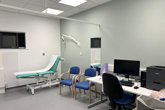 The delivery includes a phlebotomy arm, a pair of gynaecology stirrups, and a quick-release plaster treatment table, ensuring immediate operational adaptability for diverse clinical workflows