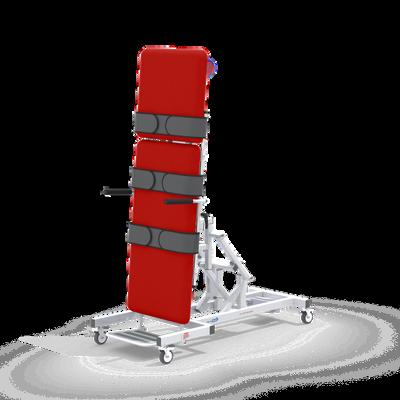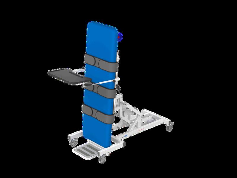 Standard Tilt Table- This versati e model features arge lockable castors for patient transport, integrated patient handles an inc inometer, and three Velcro harnesses. A fixed footboard supports comfort and stability during tilting