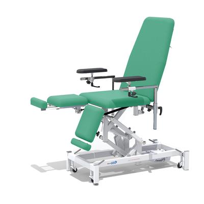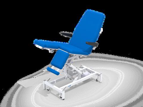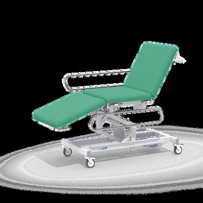 Equipped with two fully adjustab e armrests and the option for a split-leg design it a so doubles as a three-section examination couch.