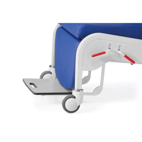 Breeze 4-Wheel Patient Chair enhances maneuverability with four braked Ø100 mm castors for easy transport. It retains the ergonomic design, comfort upholstery, and adjustment mechanisms of the 2-Wheel variant, and shares equiva ent dimensions, extended length, and weight-bearing capacity