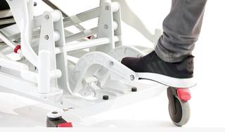 Specifically designed to assist patients with rising from seated to standing positions, the James 150 Sit to Stand hoist is ideal for low mobi ity use cases. It shares the same epoxy-coated steel frame and portability via four swivel castors (two braked) as the Arnold, while offering tailored support through leg straps, 180° grab handles, and angled footrests
